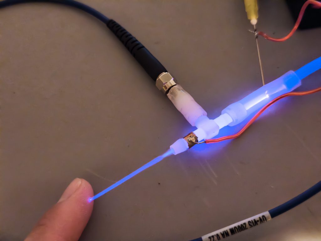 Výskum sa zameral aj na generovanie a analýzu studenej plazmy, ktorá je bezpečná a má široké uplatnenie v medicíne a pri regenerácii tkanív. V projekte využívame plošný generátor NT Plasma ONE unikátnej konštrukcie, doplnený o optické vlákno pre emisnú spektroskopiu a kanál pre GC-IMS analýzu.